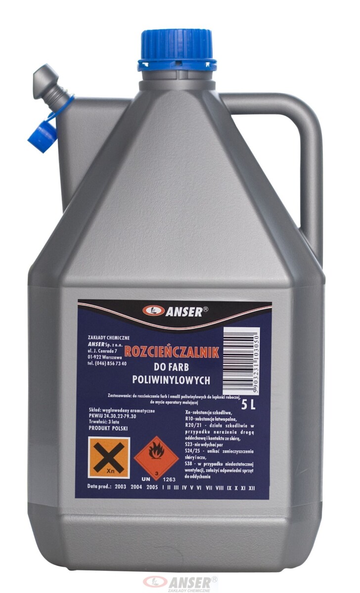 Do rozcieńczania farb i emalii poliwinylowych.