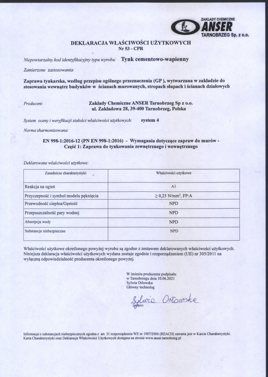 Jest suchą mieszanką produkowaną na bazie cementu portlandzkiego i wapna oraz wypełniaczy kwarcowych, komponentów ułatwiających obróbkę i nadających mu plastyczność oraz dobrą przyczepność do podłoża. Zalecany do tynkowania betonu komórkowego wewnątrz budynków – w pomieszczeniach o normalnej wilgotności powietrza, również w kuchniach i łazienkach. Przystosowany jest do tynkowania maszynowego lub ręcznego.
